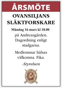 Årsmöte Ovansiljans Släktforskare i Andreasgården -Mora.